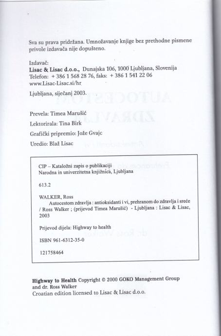 Dr. Ross Walker – Autocestom zdravlja. Antioksidanti i Vi : prehranom do zdravlja i sreće