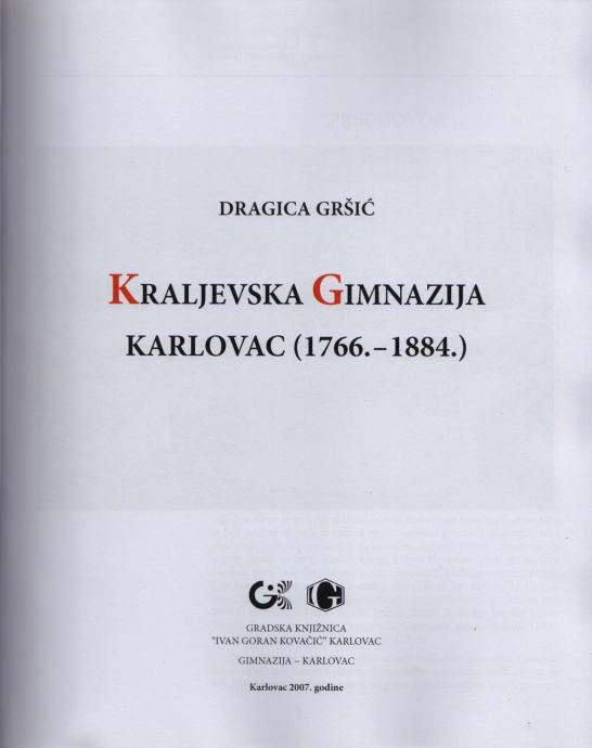 Nakladnik: Gradska knjižnica „Ivan Goran Kovačić“ – Karlovac, Gimnazija - Karlovac