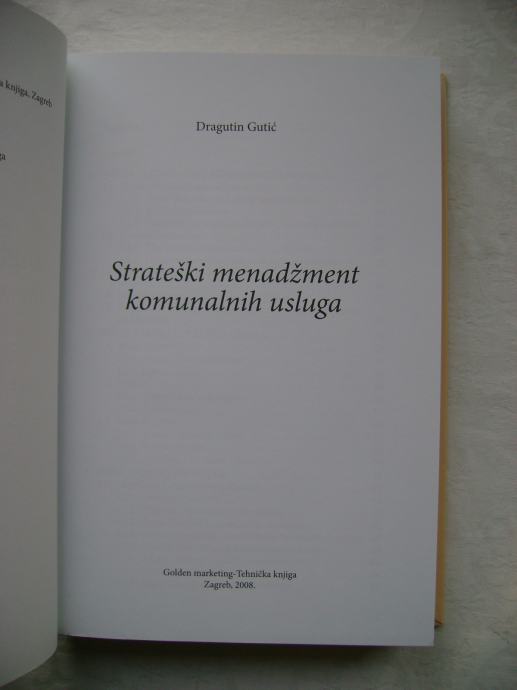 Dragutin Gutić - Strateški menadžment komunalnih usluga - izdavač Golden marketing-Tehnička knjiga, Zagreb 2008. godine, 16 x 23 cm, tvrdi uvez, 375 stranica.