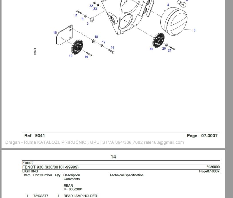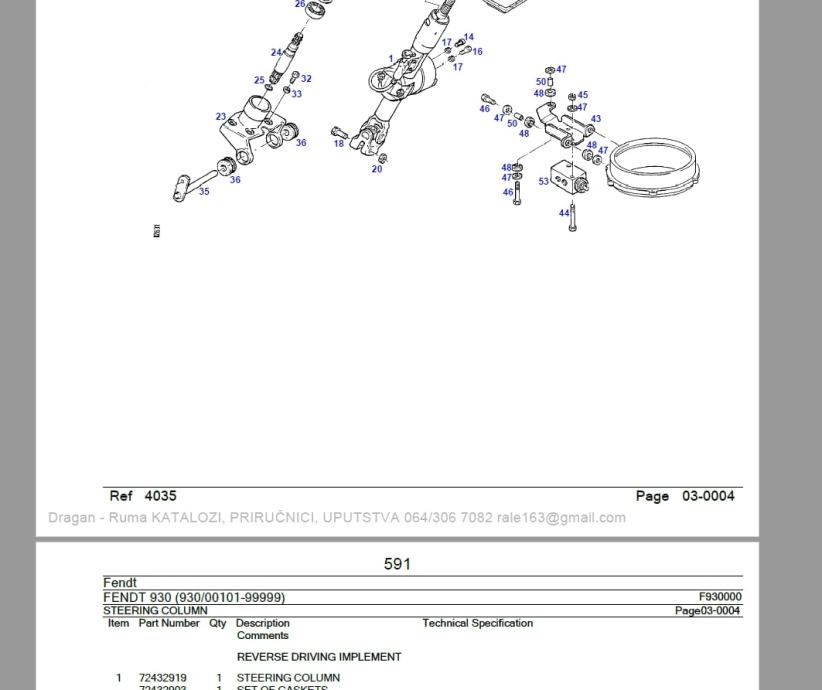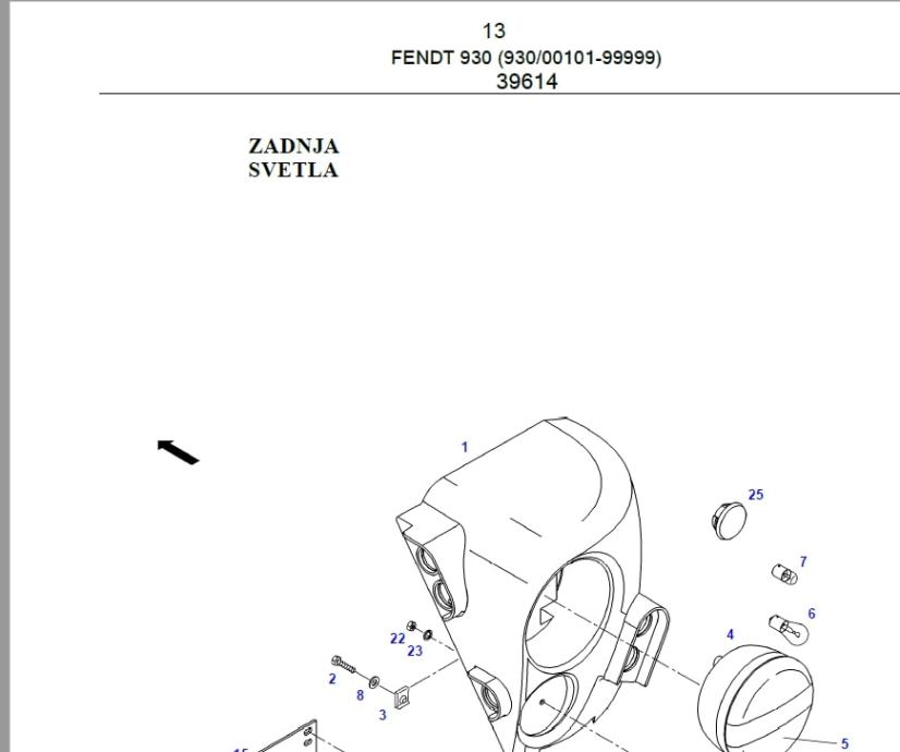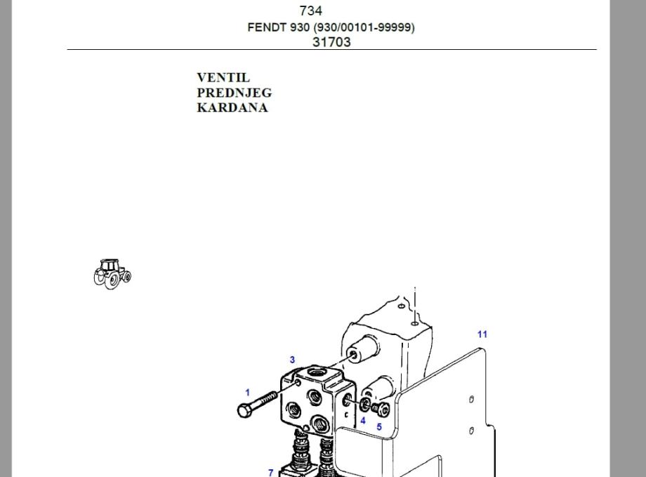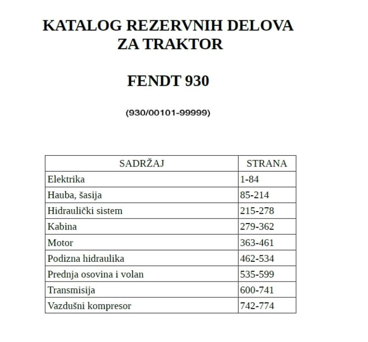 733 strane sa slikama sklopova i kataloškim brojevima dijelova.