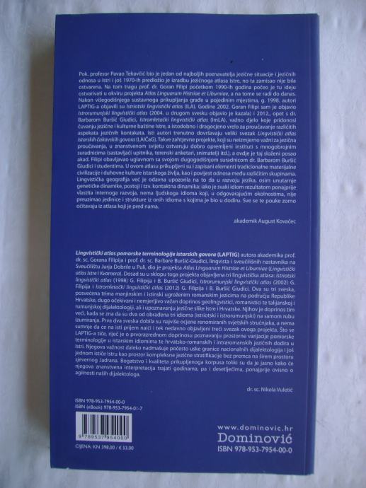 Goran Filip i/ Barbara Buršić Giudici - Lingvistički atlas pomorske terminologije istarskih govora (LAPTIG) - izdavač Naklada Nediljko Dominović, Zagreb-Pula 2013. godine, 17 x 29 cm, meki uvez sa preklopom, 415 stranica.