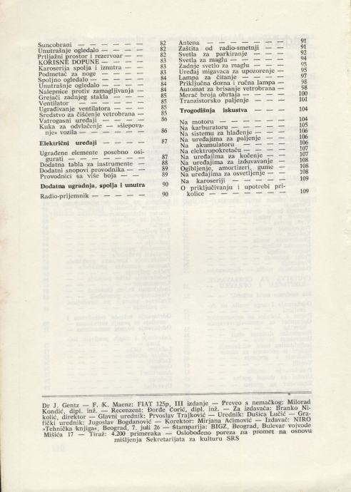 Gentz Maenz Fiat 125P Upoznavanje Uputstva Održavanje kontrola opravka