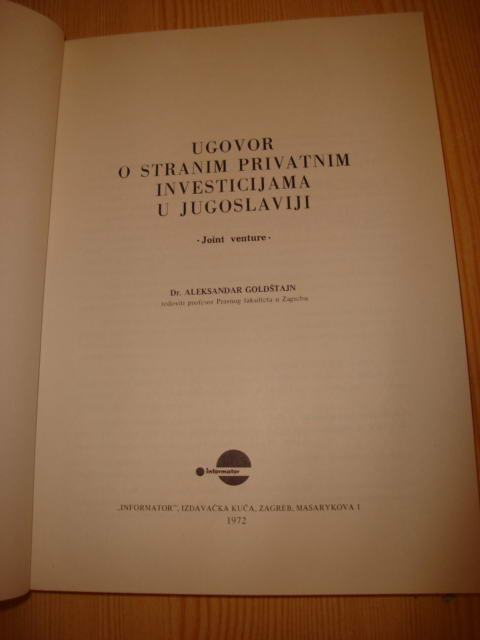 Goldštajn: Ugovor o Stranim Privatnim Investicijama u YU