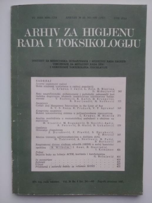 "Arhiv za higijenu rada i toksikologiju, br. 36", ur. Radovan Pleština, 58 str., naklada Instutut za medicinska istraživanja i medicinu rada Zagreb/Udruženje za medicinu rada SFRJ/Udruženje toksdikologa Jugoslavije, Zagreb, 1985., vrlo dobro antikvarno stanje, žutkasto od starosti - 2 E