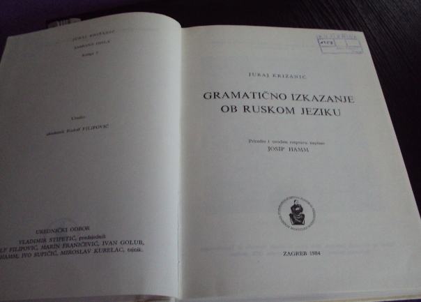 GRAMATIČNO ISKAZANJE OB RUSKOM JEZIKU - Knjiga 2 - Juraj Križanić