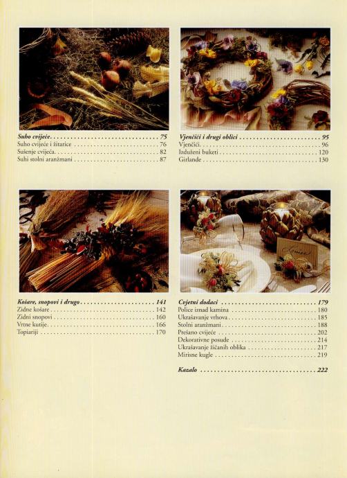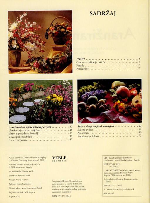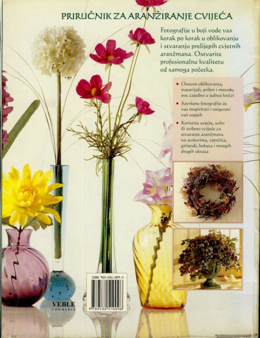 Ništa ne može uljepšati ugođaj u prostoriji kao prelijepi cvjetni aranžman na stolu. Jedinstvenim spojem vizualnih i taktilnih elemenata, vješto osmišljen aranžman može statični dnevni boravak preobrazi ti u dinamično društveno okruženje. Za svečanije prilike, ljupki cvjetni buket može stvoriti romantično raspoloženje, stimulirati razgovor i unijeti poseban ugođaj u neki događaj. Čak i košarica suhog cvijeća daje šarm i osobnost inače običnoj rustikalnoj kuhinji. ARANŽIRANJE CVIJEĆA obuhvaća široki niz tehnika prikladnih za svježe, suhe i svilene aranžmane. Nadahnut će vas vedre, živopisne fotografije, a korak po korak vodit će vas koncizne upute. Uskoro ćete moći napraviti sve, od jednostavnih svežnjeva cvijeća do složenijih tropskih stolnih aranžmana, poput pravog profesionalca.