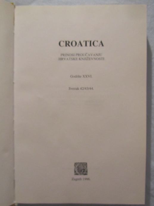 Croatica: prinosi proučavanju hrvatske književnosti, godište XXVI, svezak 42/43/44.