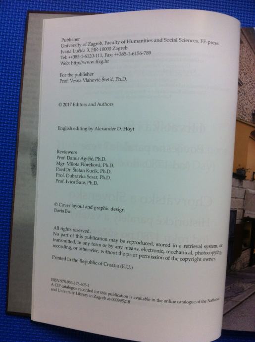 Nakladnik: Sveučilište u Zagrebu, Odsjek za povijest, Odsjek za zapadnoslavenske jezike i književnosti, Sveučilište Comenius u Bratislavi, Filozofski fakultet, Odsjek za slovačku povijest