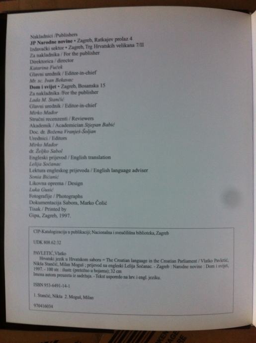 Hrvatski jezik u hrvatskom saboru/The Croatian Language in the Croatian Parliament