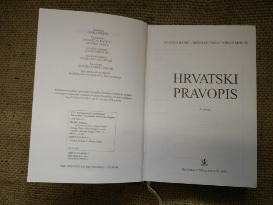 Prodajem Hrvatski pravopis, autori Babić/Finka/Moguš, tvrdi uvez, format 21x14cm, 4. izdanje 1996.godine, 466 stranica