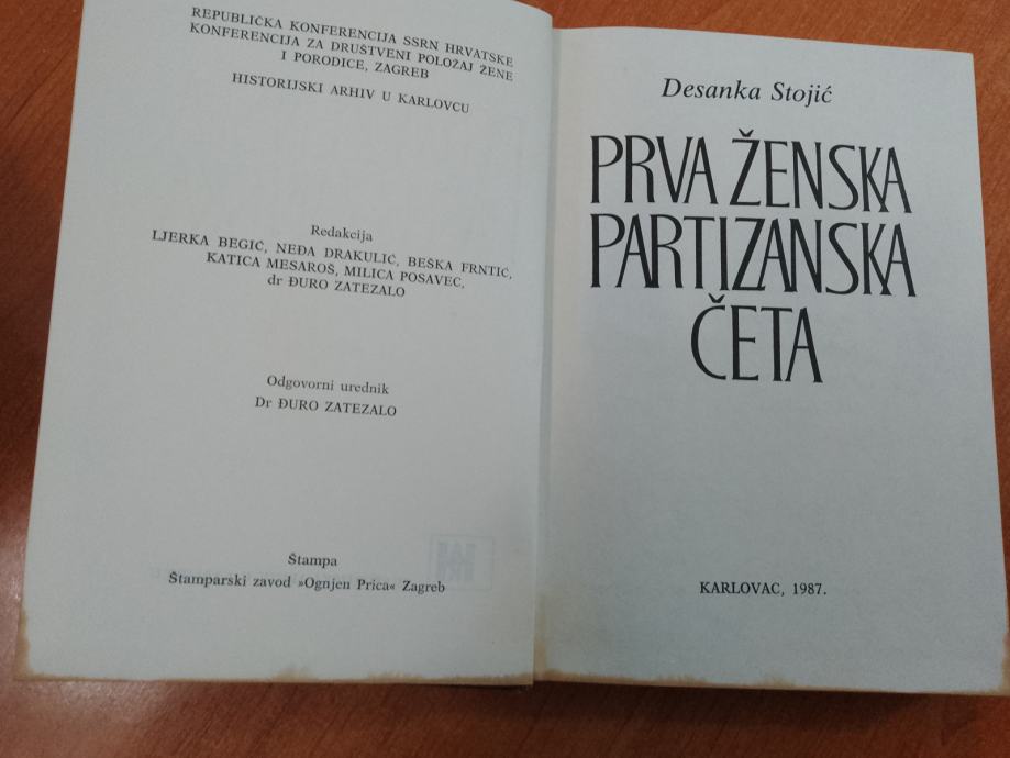 40.DESANKA STOJIĆ - PRVA PARTIZANSKA ČETA , KARLOVAC 1987 knjiga sa posvetom i potpisom autorice, 294 STR. ILUSTR.fleke pri dnu stranica...60 kuna