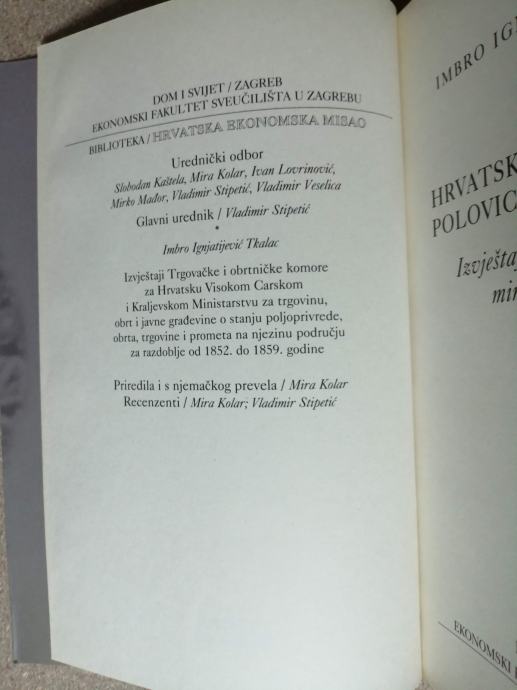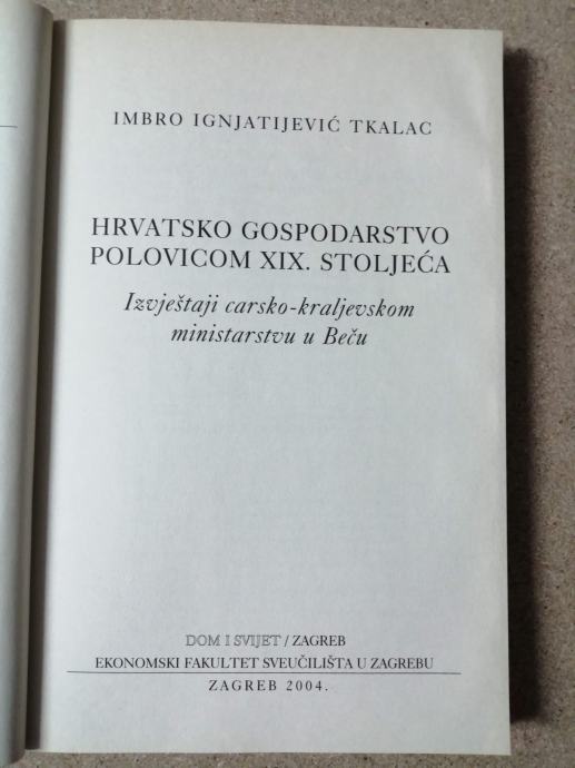 Imbro Ignjatijević Tkalac – Hrvatsko gospodarstvo polovicom XIX. stoljeća : Izvještaji carsko-kraljevskom ministarstvu u Beču