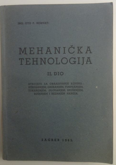 Prodajem knjigu Mehanička tehnologija II. dio, autor ing. Oto F. Horvat, izdanje 1945. godine. U odličnom stanju