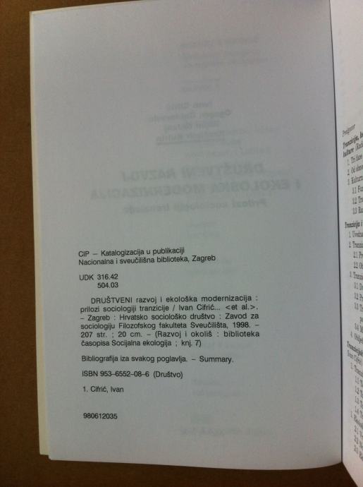 Ivan Cifrić i dr. Društveni razvoj i ekološka modernizacija (ZZ89)