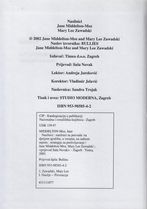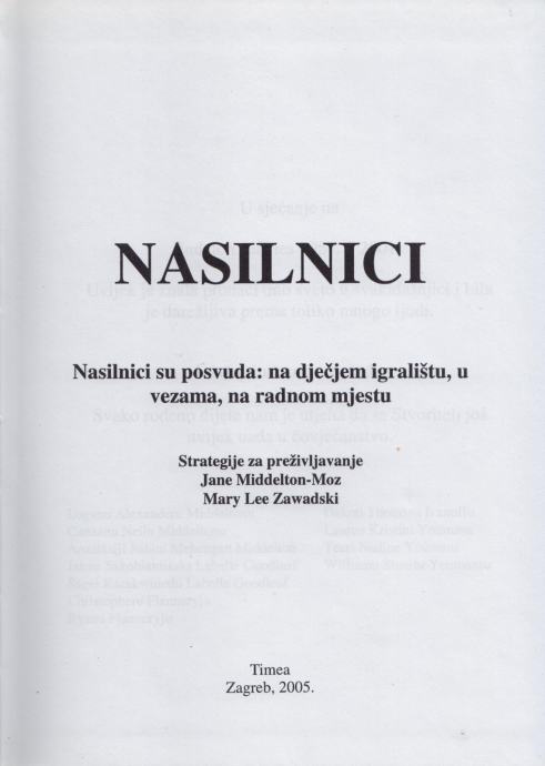 Jane Middelton-Moz, Mary Lee Zawadski – Nasilnici. Nasilnici su posvuda: na dječjem igralištu, u vezama, na radnom mjestu