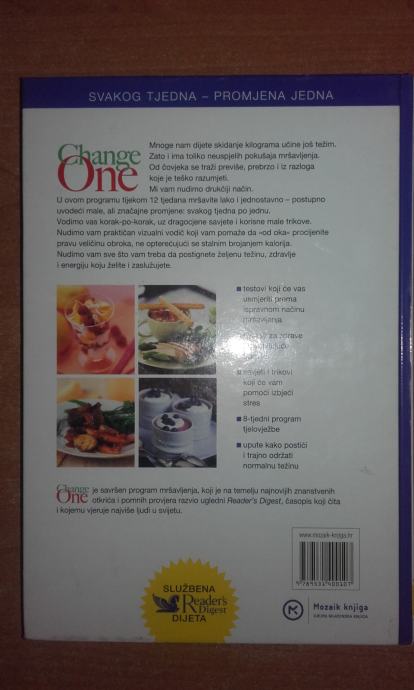 CHANGE ONE - REVOLUCIONARNI PLAN PREHRANE U 12 TJEDANA, JEDNOSTAVNO ,SIGURNO,ZAUVIJEK.SVAKOG TJEDNA - PRIMJENA JEDNA - BEZ POMODARSTVA,RIZIKA,STRESA..MOZSIK KNJIGA 2007., 320 STRANICA