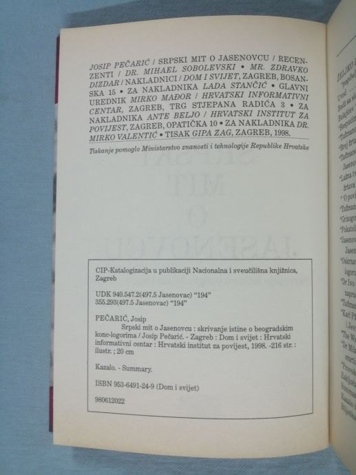 Josip Pečarić – Srpski mit o Jasenovcu. Skrivanje istine o beogradskim konc-logorima