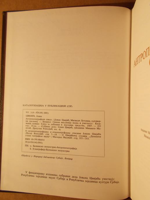 Jovan Cvijić – Antropogeografski spisi (S54)