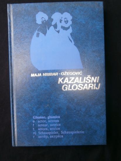 Višejezični kazališni glosarij u formi rječnika sadrži tisuću četiristo i četiri kazališna naziva i termina, preuzeta iz - pored naše kazališne terminologije - ovih jezika: engleskog, francuskog, talijanskog, njemačkog i ruskog.