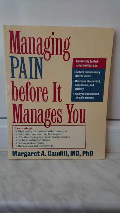 Knjiga na engleskom Managing pain, 223 str., dimenzije cca 28cm x 22cm.