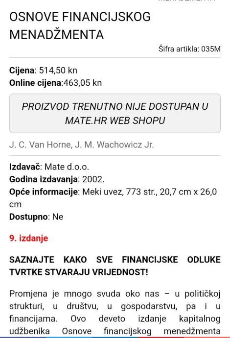 Knjiga Osnove financijskog menedžmenta, NOVO; autori J. C. Van Horne, J. M. Wachowicz Jr.