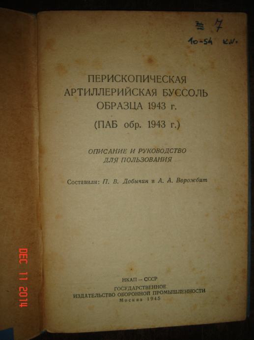 knjiga " Perikopičeskaj Artiljerijskih Busola obrasca 1943