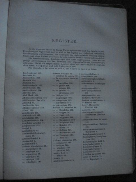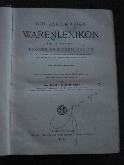 Leksikon Lijekova i Kemikalija WARENLEXIKON Karl Konig's 1920 njemački