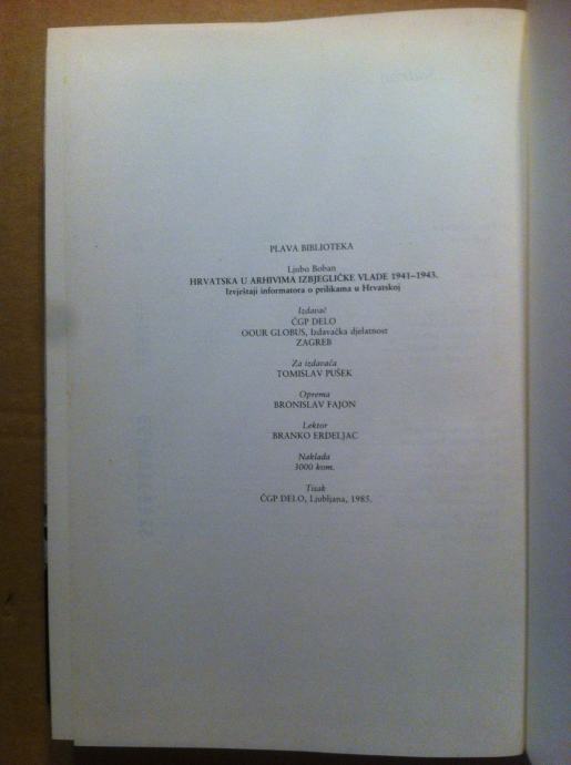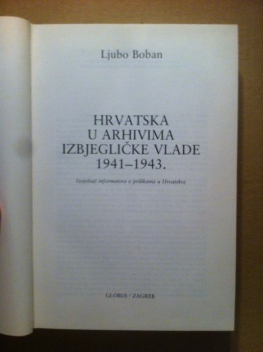 Ljubo Boban – Hrvatska u arhivima izbjegličke vlade 1941-1943. Izvještaji informanata o prilikama u Jugoslaviji