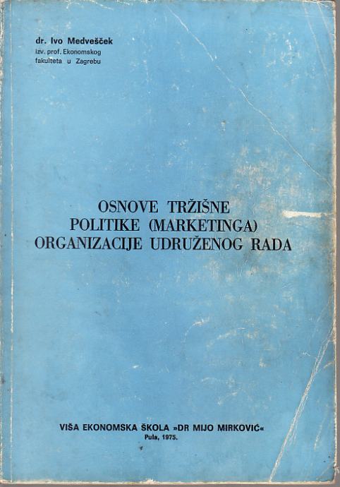 6.IVO MEDVEŠČEK : OSNOVE TRŽIŠNE POLITIKE ( MARKETINGA ) ORGANIZACIJE UDRUŽENOG RADA , PULA 1975. , 157 STR.
