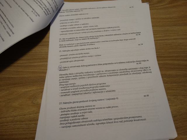 U skriptama se nalaze pitanja i odgovori iz područja frizerstva,radne pedagogije,