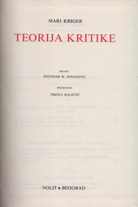 Mary Krieger – Teorija kritike (ZZ32)