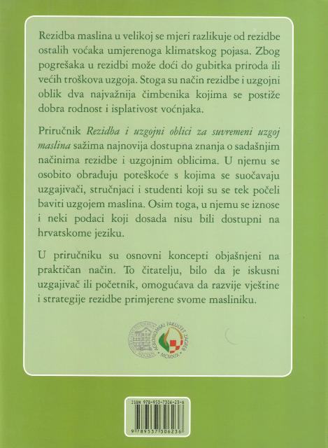 REZIDBA I UZGOJNI OBLICI ZA SUVREMENI UZGOJ MASLINA., Urednikj: Dr.sc. Zoran Šindrak