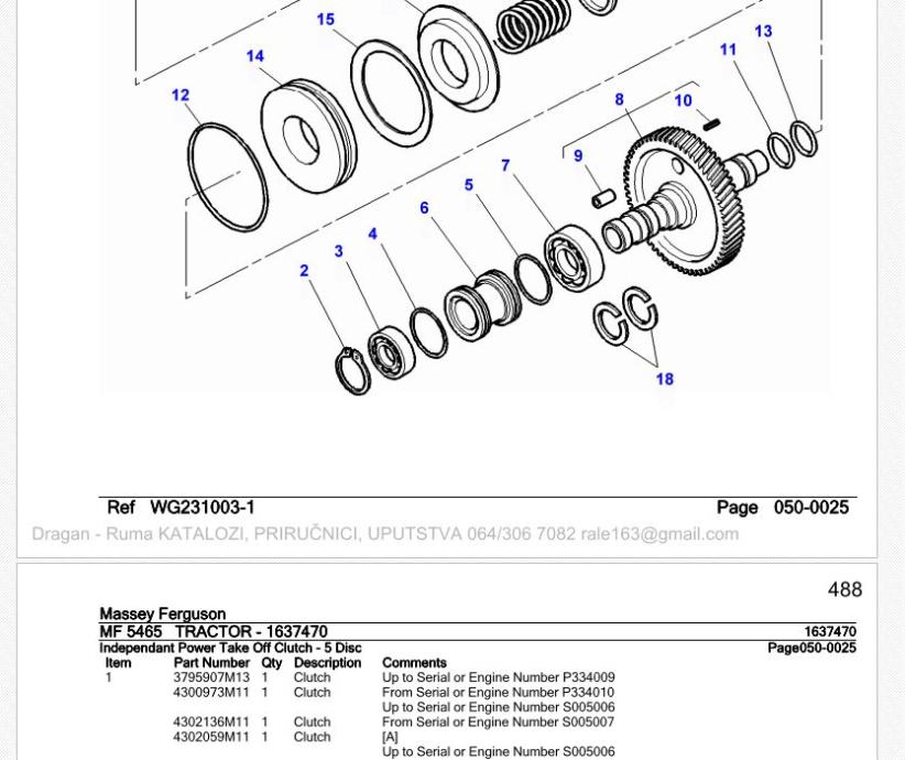 950 strana sa slikama sklopova i kataloškim brojevima dijelova.