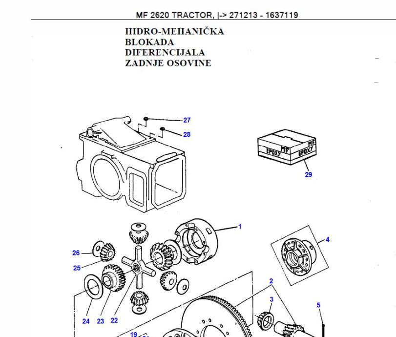 Katalog ima slike sklopova i kataloške brojeve dijelova.