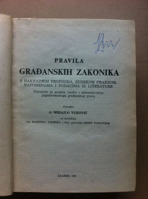 Mihajlo Vuković - Pravila građanskih zakonika s naknadnim propisima, sudskom praksom, napomenama i podacima iz literature. Priručnik za praksu, nauku i zakonodavstvo jugoslavenskoga građanskog prava
