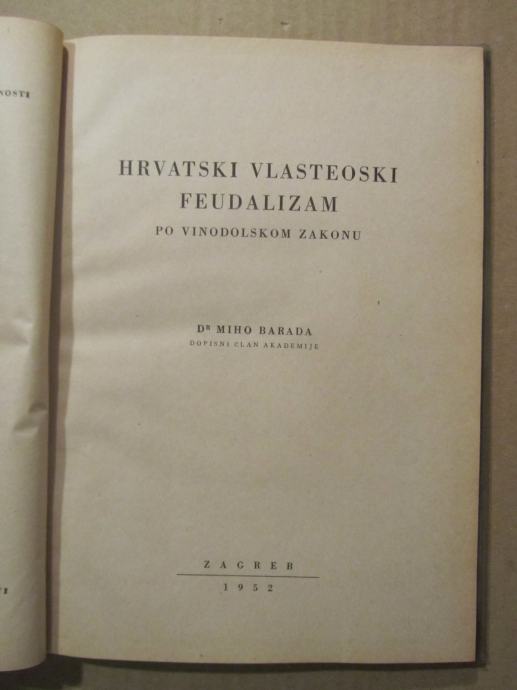 Miho Barada Hrvatski vlasteoski feudalizam po Vinodolskom zakonu (S39)