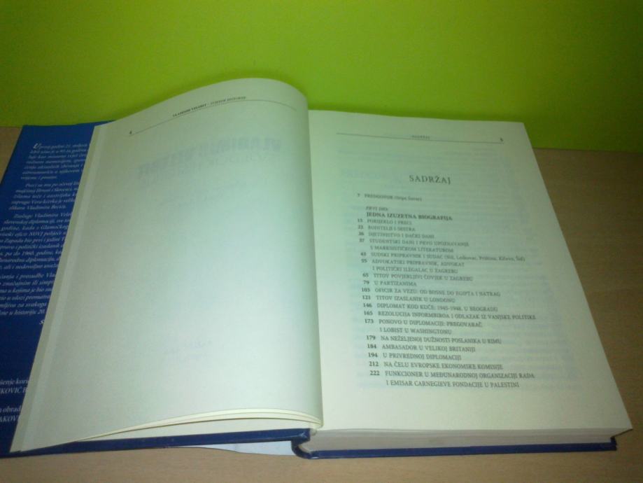 Knjiga ima dva dijela. Prvi dio, pod naslovom „Jedna izuzetna biografija“, sadrži najznačajnije događaje i zanimljive pojedinosti iz Velebitovog života. Ima dvadeset poglavlja, među kojima su priče o njegovom porijeklu i precima; djetinjstvu, školskim i studentskim danima; karijeri suca (u Nišu, Leskovcu, Prištini, Kičevu, Šidu) i odvjetnika (u Zagrebu); uključivanju u ljevičarski pokret; poznanstvu s Titom i odlasku u partizane, ulozi „oficira za vezu“ Vrhovnog štaba NOVJ sa zapadnim saveznicima, boravku i aktivnostima (kao Titovog izaslanika) u Londonu, značajnim dužnostima u jugoslavenskoj i međunarodnoj diplomaciji…