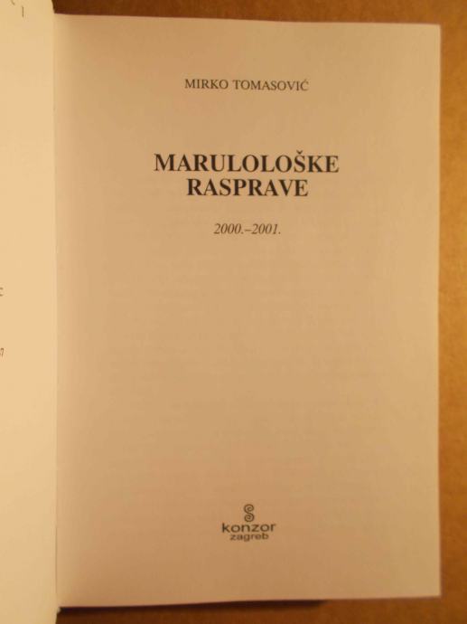 Mirko Tomasović – Marulološke rasprave 2000.–2001. (ZZ60)