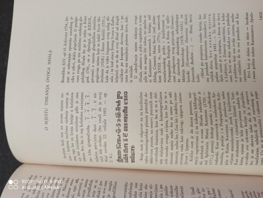 Ovo je prva hrvatska tiskana knjiga koja je tiskana na hrvatskom jeziku, uglatoj glagoljici. Ujedno je i prvi misal u Europi koji nije tiskan na latinskom jeziku. Tiskana je 22. veljače 1483. godine. Tisak je dvobojni, crveni i crni.