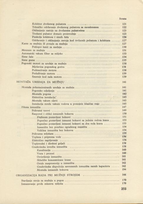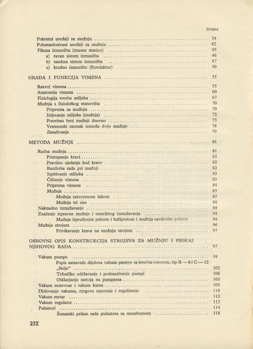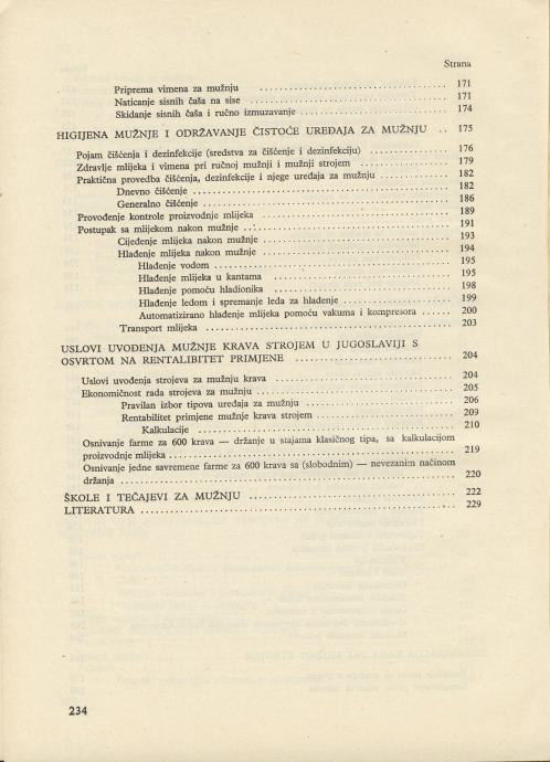Naša literatura oskudjeva domaćim knjigama sa područja mehanizacije stočarstva, a o mužnji krava strojem uopće ne postoji ni opsežniji prikaz, tako da se osjećala potreba za ovakvom knjigom. Institut za mehanizacije NRS Beograd smatrao je da je u ovom momentu za unapređenje našeg govedarstva potrebna takva knjiga u kojoj bi čitalac našao ono što mu treba u svakodnevnoj praksi, te je u tu svrhu dao poticaj autorima za obradu odgovarajuće tematike. Govedarstvo se u FNRJ razvilo u važnu privrednu granu, a u toku posljednjih godina proces razvitka mliječnih gazdinstava pokazuje stalnu tendenciju porasta u broju i proizvodnji. Paralelno s time iskrsava problem mehanizacije sve većeg uvođenja strojeva za mužnju, a mjere koje se poduzimaju oko unapređenja govedarstva obećavaju, da će potreba na socijalističkim dobrima na strojevima za mužnju u budućnosti još više i brže rasti. Kako će agronomi i ostali stručnjaci u poljoprivredi, kao i organizatori proizvodnje i referenti, sve više trebati rješavati pitanja izbora, izgradnje, montaže i manipulacije strojevima za mužnju, pa će im ovaj praktični prikaz, nadamo se dobro poslužiti. Ujedno građevinskim i strojarskim projektantima i izvođačima kao i slušaocima stočarskih škola i tečajeva će ova knjiga poslužiti kao prikladan priručnik za svladavanje problematike ove vrste mehanizacije u stočarstvu. Ova knjiga ne pretendira na strogi način naučnog iznašenja materije, već treba samo da pruži sređeni materijal o strojevima za mužnju i njihovoj primjeni, koji će se moći lako usvojiti i primijeniti u praksi. Ujedno nam je namjera, da ovo važno pitanje pokrenemo kao aktuelno među našim stručnim kadrovima, koji bi još više pridonijeli zajedničkim radom na polju ispitivanja, usavršavanja i kontrole primjene ove vrste mehanizacije kod nas. Pri obradi knjige služili smo se vlastitim iskustvom iz prakse, projektiranja i proizvodnje strojeva i uređaja za mužnju, a za prikaz pojedinih partija koristili smo razne inostrane stručne knjige i priručnike, dok smo se nekim i doslovno služili. Slike i crteži većinom su originali, koji su izrađeni po našem uputstvu, no dio je uzet iz literature koju navodimo.