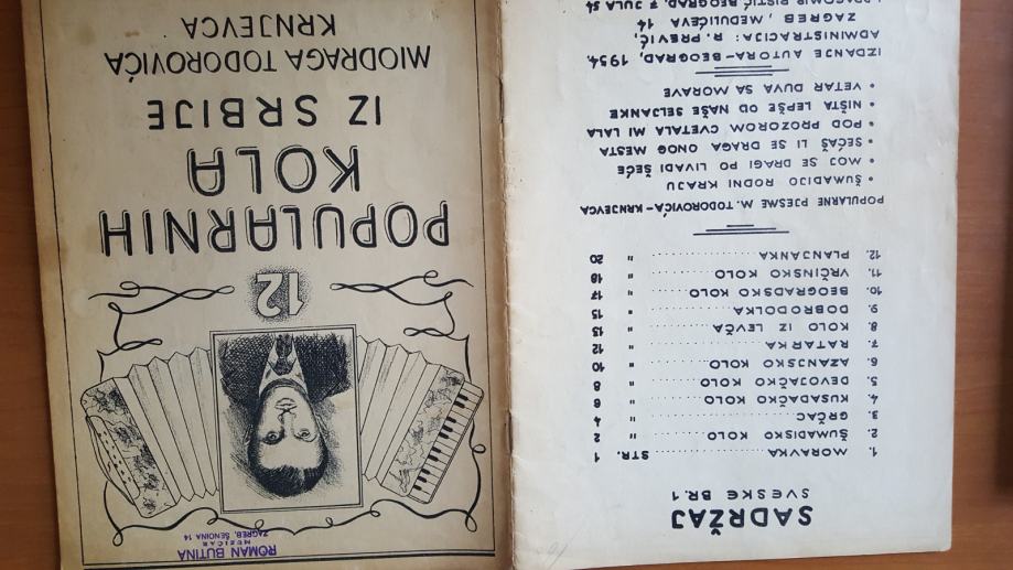 NARODNE PJESME JUGOSLAVIJE za harmoniku i pjevanje 1, sakupio Ratimir Prević 32 str.