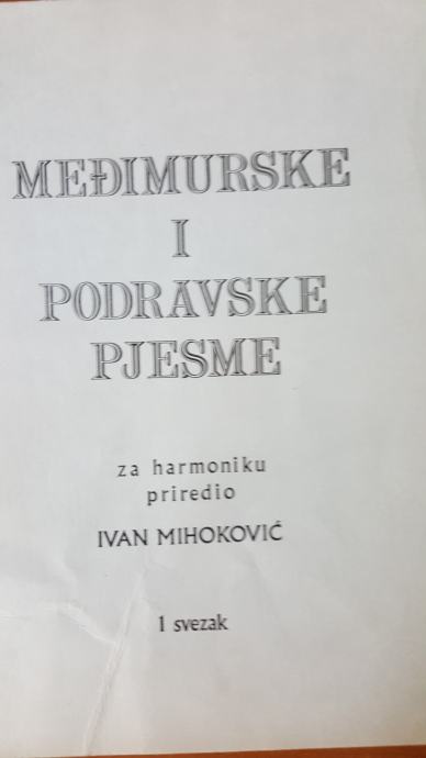 MEĐIMURSKE I PODRAVSKE PJESME, za harmoniku priredio Ivan Mihoković, 1 svezak 32 str.