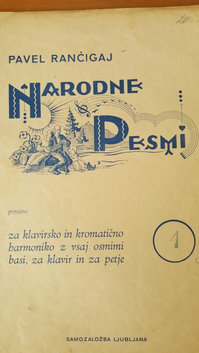 NARODNE PESMI 1, priredio Pavel Rančigaj, prirejene za klavirsko in kromatično harmoniko 8 str.