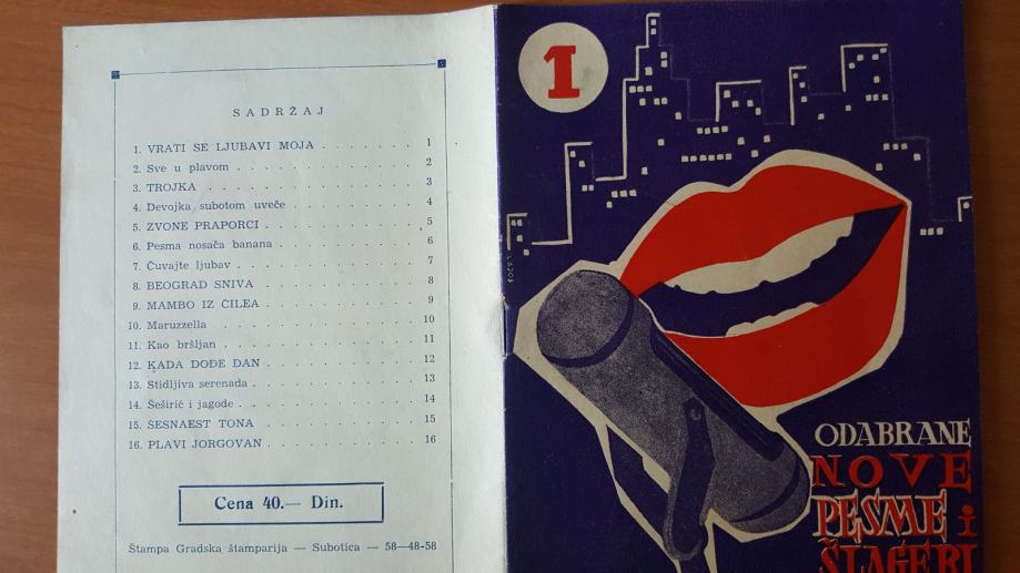 ODABRANE NOVE PESME I ŠLAGERI ZA VAS 1, tekstovi pjesama 16 str.