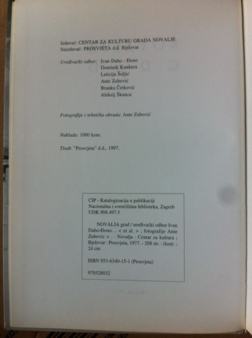 Nakladnik: Centar za kulturu grad Novalje, Prosvjeta d.d.