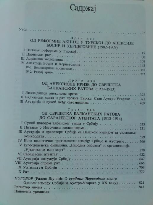 Tematika: Srbija i jugoslovensko pitanje/ a) Srbija - Austro-Ugarska - 20 v. b) Austro-Ugarska - Srbija - 20 v. c) Bosna i Hercegovina - aneksija... Pogovor Radoš Ljušić, Slika autora, Registar imena, Ćirilica, Šiven povez, 860 str, 25 cm, ODLIČAN PRIMERAK.