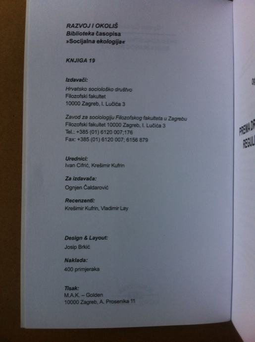 Razvoj i okoliš, Biblioteka časopisa „Socijelna ekologija“, knjiga 19