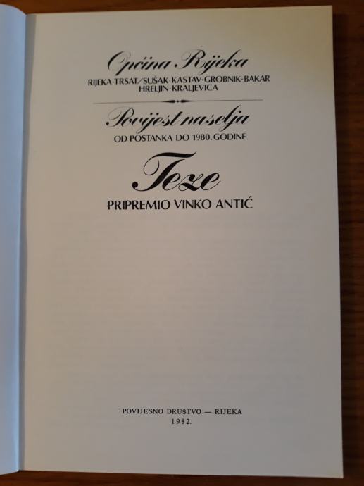 - Izdavač : Povijesno društvo Rijeka,1982.