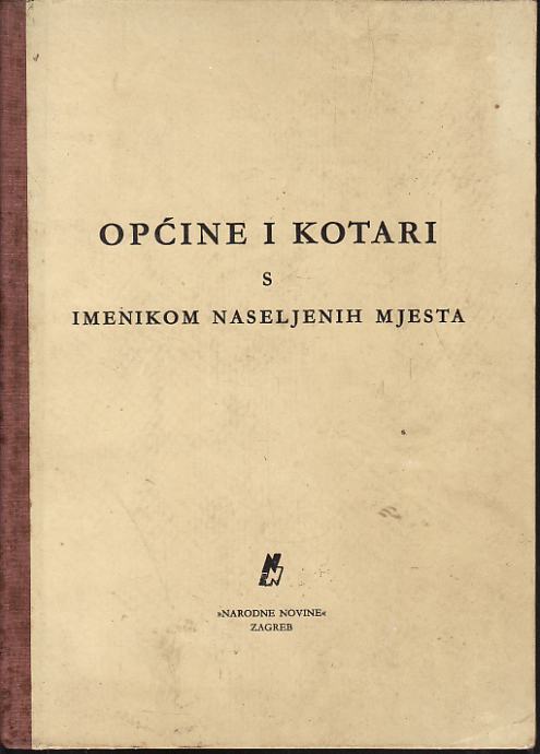 OPĆINE I KOTARI S IMENIKOM NASELJENIH MJESTA , ZAGREB 1960.