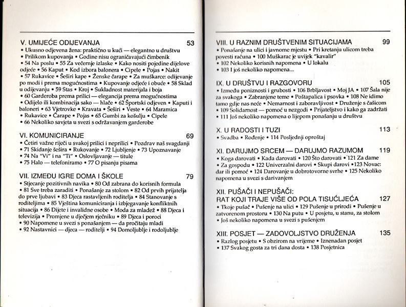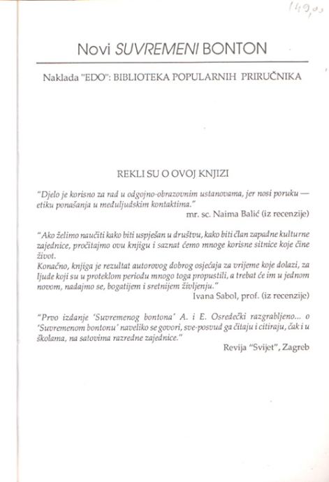 Deseto izdanje ovog priručnika o lijepom ponašanju za mladež i odrasle. Sadrži i savjete za neke suvremenije aspekte života, kao što su pušenje na javnim mjestima, kultura vožnje, ponašanje u crkvi, očuvanje okoliša i drugo.